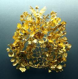 | Keywords: Golden crown Armento Staatliche Antikensammlungen.jpg Goldkranz Ehren- oder Totenkranz 370-360 v Chr Aus einem Grab in Armento Basilicata Golden decorated crown funerary or marriage material 370 “360 BC From a grave in Armento Basilicata Couronne décorée en or matériel funéraire ou nuptial 370-360 av J -C Provient d'une tombe à Armento Basilicata Museum Staatliche Antikensammlungen Room 10 case 2 object history credit line accession number User Bibi Saint-Pol own work 2007-02-13 other versions Crown of golden wreaths from Armento |