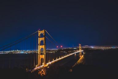 Keywords: golden gate bridge suspension night dark illuminated road street highway famous destination tourism san francisco usa america california landmark architecture travel structure water bay coast historic metal