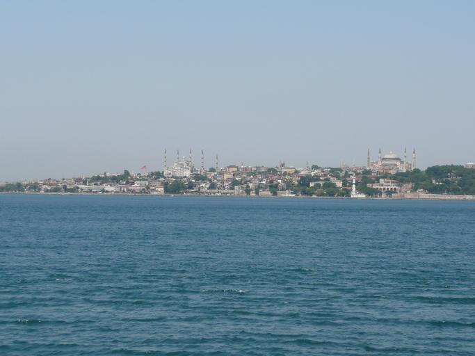 Keywords: Golden Horn Bosphorus 01.JPG View from a ferry coming from the Asian side towards Sarayburnu of Istanbul Visible is the Hagia Sophia and the Sultan Ahmed Mosque Own 2007-07 Gryffindor Views of the Bosphorus Views of Istanbul