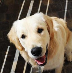 Keywords: golden retriever dog animal pet domestic animal male sand beige golden doggie complicity smile