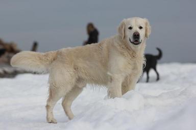 Keywords: golden retriever snow winter baltic sea