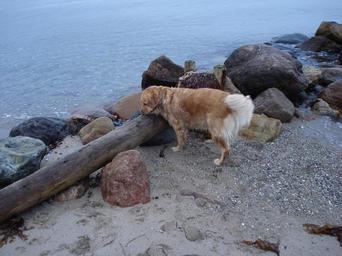 Keywords: golden retriever water dog beach