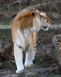 | Keywords: Golden tiger 2 - Buffalo Zoo.jpg Golden tiger at the Buffalo Zoo From wikipedia article The golden tabby tiger or golden tiger is an extremely rare colour variation caused by a recessive gene and now found only in captive tigers There are currently believed to be less than 30 of these rare tigers in the world but many more carriers of the gene Own 2006-12-16 Dave Pape PD-user Davepape Golden tigers in Buffalo Zoo Standing tigers Golden tigers | ||||