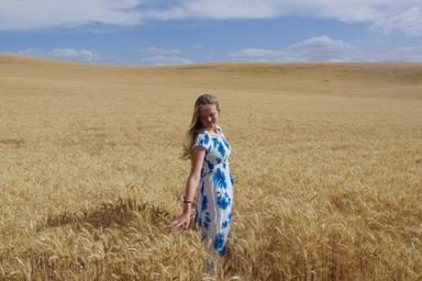 Keywords: golden wheat field harvest girl agriculture