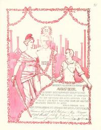 | Keywords: Goldenes Buch zum 70. Geburtstag August Bebel 1910 Seite 095.jpg Goldenes Buch zum 70 Geburtstag August Bebel 1910 Seite_ jpg 094 096 Glückwunschschreiben zum 70 Geburtstag von August Bebel Zentralvorstand des Verbandes der Sattler und Portefeuiller August Bebel zum siebzigsten Geburtstag 22 Februar 1910 / mit einer Nachbemerkung von Ursula Herrmann Reprint des Unikats aus dem Zentralen Parteiarchiv der SED Dietz Verlag Berlin 1989 Lizenzausgabe Saur 1989 ISBN 3-598-07256-2 self scanned from own book 1910 Diverse PD-old-70-1923 Goldenes Buch zum 70 Geburtstag August Bebel 1910 |