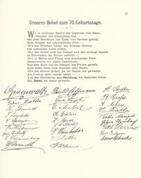 | Keywords: Goldenes Buch zum 70. Geburtstag August Bebel 1910 Seite 049.jpg Goldenes Buch zum 70 Geburtstag August Bebel 1910 Seite_ jpg 048 050 Glückwunschschreiben zum 70 Geburtstag von August Bebel SPD-Landesorganisation Hamburg August Bebel zum siebzigsten Geburtstag 22 Februar 1910 / mit einer Nachbemerkung von Ursula Herrmann Reprint des Unikats aus dem Zentralen Parteiarchiv der SED Dietz Verlag Berlin 1989 Lizenzausgabe Saur 1989 ISBN 3-598-07256-2 self scanned from own book 1910 Diverse Goldenes Buch zum 70 Geburtstag August Bebel 1910 PD-old-70-1923 |
