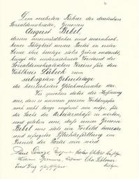 | Keywords: Goldenes Buch zum 70. Geburtstag August Bebel 1910 Seite 051.jpg Goldenes Buch zum 70 Geburtstag August Bebel 1910 Seite_ jpg 050 052 Glückwunschschreiben zum 70 Geburtstag von August Bebel Vorstand des Sozialdemokratischen Vereins für den Wahlkreis Lübeck August Bebel zum siebzigsten Geburtstag 22 Februar 1910 / mit einer Nachbemerkung von Ursula Herrmann Reprint des Unikats aus dem Zentralen Parteiarchiv der SED Dietz Verlag Berlin 1989 Lizenzausgabe Saur 1989 ISBN 3-598-07256-2 self scanned from own book 1910 Diverse Goldenes Buch zum 70 Geburtstag August Bebel 1910 PD-old-70-1923 |
