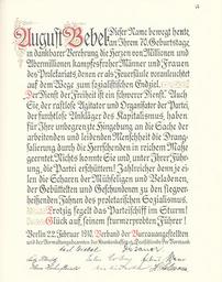 | Keywords: Goldenes Buch zum 70. Geburtstag August Bebel 1910 Seite 067.jpg Goldenes Buch zum 70 Geburtstag August Bebel 1910 Seite_ jpg 066 068 Glückwunschschreiben zum 70 Geburtstag von August Bebel Vorstand des Verbandes der Bureauangestellten und der Verwaltungsbeamten der Krankenkassen Deutschlands August Bebel zum siebzigsten Geburtstag 22 Februar 1910 / mit einer Nachbemerkung von Ursula Herrmann Reprint des Unikats aus dem Zentralen Parteiarchiv der SED Dietz Verlag Berlin 1989 Lizenzausgabe Saur 1989 ISBN 3-598-07256-2 self scanned from own book 1910 Diverse Goldenes Buch zum 70 Geburtstag August Bebel 1910 PD-old-70-1923 |