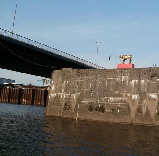 | Keywords: Goldenes Kalb Brückenpfeiler.JPG en Artwork golden calf on a bridge pier in the harbor of Hamburg Germany de Kunstwerk Goldenes Kalb auf einem Brückenpfeiler im Hamburger Hafen Germany own Gerhard kemme 2011-05-05 Cc-zero Sculptures of Golden calf Ellerholzhafen |
