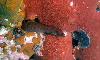 Keywords: Goldentail Moray.jpg Gymnothorax miliaris en Goldentail Moray photographed near Holguin Cuba own Cam Barr 2009-12-12 Gymnothorax miliaris Underwater photographs of nature Fish of Cuba december 2009 photographs
