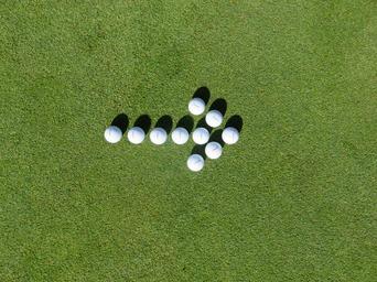 Keywords: golf arrow golf ball direction indicator direction right balls grass meadow rush