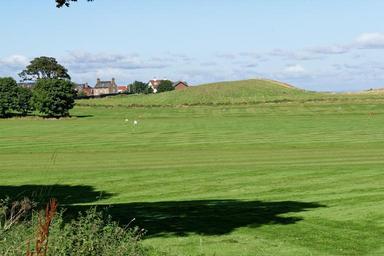 Keywords: golf golf practice ground flags landscape scenery sunny day sky buildings golf practice scenic green golfing grass leisure practice recreation outdoors hole play game hobby fun sport