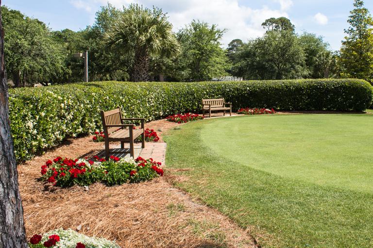 Keywords: golf putting green green golf course course golfing sport grass leisure play summer club recreation hole game hobby putt activity golfer golf ball outdoors vacation player landscape fun lifestyle relax nature golf club flowers hedge scene