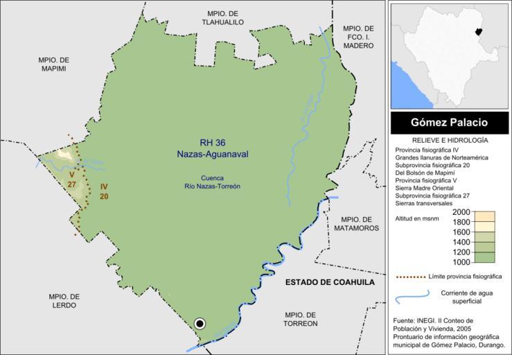 Keywords: Gomez Palacio hidrologia.svg Mapa de relieve de hidrología del municipio de Gómez Palacio Durango México own Inkscape 2010-07-31 Battroid Maps of Durango