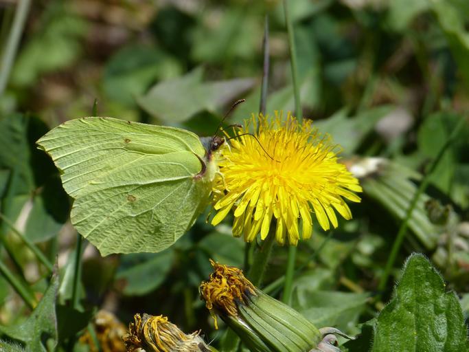 Keywords: gonepteryx rhamni butterfly yellow butterflies white ling pieridae dandelion summer spring
