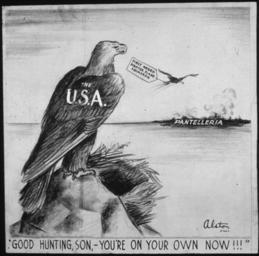 | Keywords: "GOOD HUNTING, SON,- YOU'RE ON YOUR OWN NOW^^" - NARA - 535667.jpg Scope and content Training blacks in the Air Force General notes 535667 Local identifier 208-COM-182 Office for Emergency Management Office of War Information Domestic Operations Branch News Bureau 06/13/1942 - 09/15/1945 NARA-Author Alston Charles Henry 1907-1977 Artist 3569253 <br /> Still Picture Records Section Special Media Archives Services Division NWCS-S National Archives at College Park 8601 Adelphi Road College Park MD 20740-6001 1943 Record group Record Group 208 Records of the Office of War Information 1926 - 1951 Record group ARC 535 Artworks and Mockups for Cartoons Promoting the War Effort and Original Sketches by Charles Alston compiled ca 1942 - ca 1945 Series ARC 535594 File unit File unit ARC Variant control numbers NAIL Control Number NWDNS-208-COM-182 Other versions <gallery> File GOOD_HUNTING _SON -_YOU'RE_ON_YOUR_OWN_NOW _-_NARA_-_535667 tif tif File GOOD_HUNTING _SON -_YOU'RE_ON_YOUR_OWN_NOW _-_NARA_-_535667 jpg jpg </gallery> NARA-cooperation PD-USGov Charles Alston Personifications of the United States Historical images of Pantelleria |