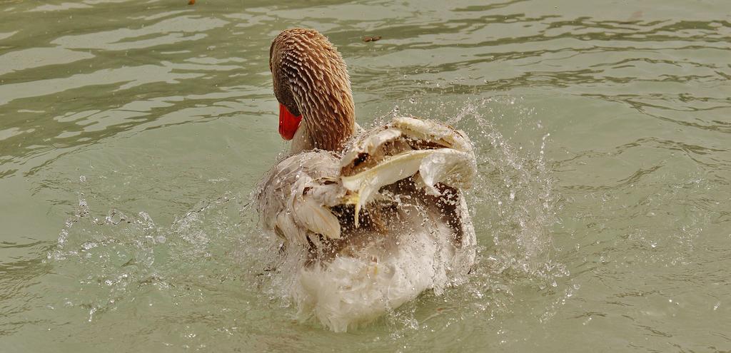 Keywords: goose wildpark poing splashing water swim wet animal world animal nature