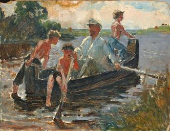 | Keywords: Gorelov Lenin and boy.jpg en Lenin and boys sketch Gorelov G N ru Ка тина Ленин и мальчики эскизная абота авто Го елов Гав иил икитич А хив Го елова Ю внука Го елова Гав иила икитича Го елов Гав иил икитич 1930е Позволяю Го елов аксим внук Го елова Г Ка тина была написана по заказу узея Революции Союза ССР и является эскизом к ка тине По г ибы на д угой бе ег Ка тон масло 47 5х65 Пов еждения ка тона Работа п оисходит из семьи художника Подтве ждение подлинности внуком художника на обо оте Ка тина оценена экспе тами антиква ного дома Гелос после чего выставлялась на Объединенный Антиква ный Аукцион 20 ма та 2009 года в азделе Живопись см сайт Аукционного дома Гелос PD-Art Boys in art Vladimir Lenin in art Boats in art Paintings of people sitting in boats Gavriil Gorelov Four males in art |