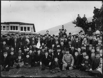 | Keywords: Gorentsi-wedding-Papazoglou-1.jpg Сватбата на Ха алампос Х истидис и а ика Возе в село Го енци Косту ско в дво а на цъ квата Света Бого одица ладоженците са на коне на заден план Gathering of villagers in Gorentsi today Korisos Greece in the yard of the church of the Holy Mother on the occasion of the wedding of Charalampos Christideis and Marika Voze The bride and the groom are on horseback in the background Λεωνίδας Πα άζογλου Φωτογραφικά ορτραίτα α ό την Καστοριά και την εριοχή της την ερίοδο του ακεδονικού Αγώνα ουσείο Φωτογραφίας Θεσσαλονίκης 2004 Leonidas Papazoglou 1872 - 1918 PD-art Pictures by Leonidas Papazoglou Korisos Wedding ceremonies in Greece Wedding portrait photographs Group portraits with many people |