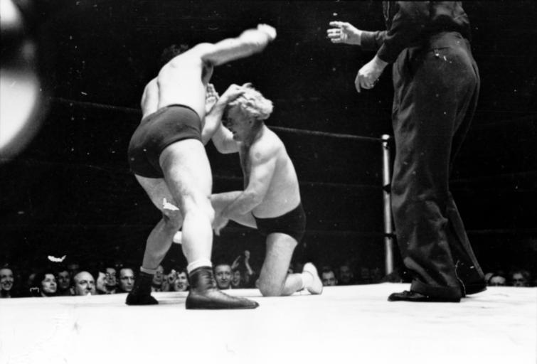 | Keywords: Gorgeous George in the ring cph.3d02363.jpg Gorgeous George kneeling and another wrestler during a wrestling match Image from Look photographic assignment with title Chicago city of contrasts LOC-image cph 3d02363 Creator Stanley Kubrick 1949 No known restrictions on publication PD-Look Stanley Kubrick Stanley Kubrick Gorgeous George 1949 in Chicago People of the United States in 1949 Professional wrestling events | ||||