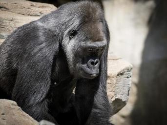 Keywords: gorila monkey apes sitting wildlife mammal primate jungle safari natural species rainforest zoo conservation reserve habitat intelligent outdoor hairy cuddly captivity cute furry fur society caged male shelter