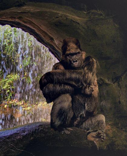 Keywords: gorilla ape grim silverback watch thinking jungle cave