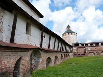 Keywords: goritsy monastery religion russia orthodox architecture building abbey kirilov historically wall tower meadow stone
