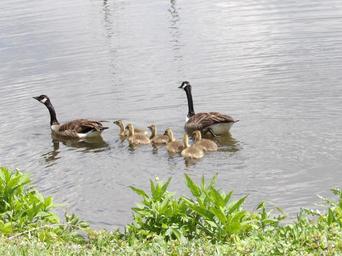 Keywords: goslings geese pond lake swimming young birds wildlife