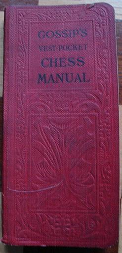 Keywords: Gossip Vest-Pocket Chess Manual.jpg en Photo taken by me of front cover of book Gossip's Vest-Pocket Chess Manual by George H D Gossip died 1907 No copyright indicated Published by David McKay 604-8 South Washington Square Philadelphia; no date specified photo of cover of book Gossip's Vest-Pocket Chess Manual photo by me; designer of book cover unknown PD-old Chess books |