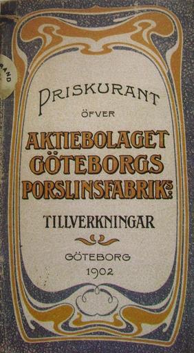 | Keywords: Göteborgs Porslinsfabrik.JPG en Picture of price list from Göteborgs Porslinsfabrik sv Foto av priskurant från Göteborgs Porslinsfabrik own Raphael Saulus Defunct companies of Sweden Companies established in 1898 Porcelain Brands Companies in Göteborg |
