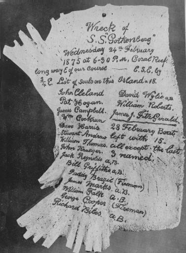| Keywords: Gothenberg Turtle Shell.jpg Creator unknown Black white photo held by the South Australia Museum records The turtle shell was engraved by the 18 survivors of the SS Gothenburg who managed to reach Holbourne Island on two lifeboats in February 1875 It is believed although not certain that the photograph was taken by the Adelaide School of Photography in July 1875 Free of copyright restriction The actual turtle shell was presented to the South Australia Museum in 1932 by Mr W D Cleland brother of John Cleland one of the survivors PD-Australia Original upload log en wikipedia Gothenberg+Turtle+Shell jpg 2008-02-23 00 45 Spy007au 513×699× 254799 bytes <nowiki>Creator unknown Black white photo held by the South Australia Museum records Actual turtle shell presented to the museum in 1932 by Mr W D Cleland brother of John Cleland one of the survivors Free of copyright restriction </nowiki> Islands of Australia Shipwrecks |