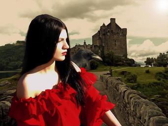 Keywords: gothic fantasy medieval female medieval lady beautiful woman medieval character epic character fantasy portrait portrait celtic legends castle grey sky crow