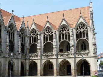 Keywords: gothic town hall facade monument gable stadtmitte city downtown historic old town historic town hall architecture marketplace window braunschweig lower saxony old town market historically building stuetztpfeiler arches arcades pillar