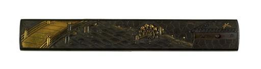 | Keywords: Gotô Keijô - Kozuka of a Bridge, Water-wheel and Castle Wall - Walters 51784.jpg This kozuka depicts a waterwheel in a river next to a castle wall On the right the castle fortifications jut into the river A bridge is at the left The reverse side of the kozuka is made of gold between 1651 1692 Edo shakudo gold cm 9 6 l accession number 51 784 39541 Henry Walters Baltimore date and mode of acquisition unknown Walters Art Museum Henry Walters Acquired by Henry Walters signature text place of origin Kyoto Japan Walters Art Museum license Kozuka in the Walters Art Museum Gotô Keijô Media contributed by the Walters Art Museum needs category review |