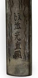 | Keywords: Got么 Sokuj么 - Kozuka with the D么j么ji Temple Bell - Walters 51805 - Mark A.jpg This design is a scene from the story of D鬸鬸i temple The temple bell is shown at the center of the composition At the right are two monks holding prayer beads and praying A woman dances at the left holding a mallet for striking the bell The monks at D鬸鬸i used the bell to hide a traveling monk who was trying to escape a woman who was pursuing him She thought he had promised to marry her and in her anger at his rejection of her transformed herself into a dragon She coiled herself around the bell and killed the hidden monk by breathing fire on the bell In the noh and kabuki plays about the story a dancer who is the spirit of the jealous woman comes to the temple to celebrate the installation of a new bell She dances under the bell and when it falls on her she is transformed into a dragon The dancer is shown here as a fox Foxes were commonly thought to take the form of a beautiful woman in order to cause mischief between 1600 1631 early Edo shibuichi gold cm 9 8 l accession number 51 805 10696 Henry Walters Baltimore date and mode of acquisition unknown Walters Art Museum Henry Walters Acquired by Henry Walters signature place of origin Kyoto Japan Walters Art Museum license Kozuka in the Walters Art Museum Got么 Sokuj么 Media contributed by the Walters Art Museum needs category review |