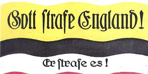 | Keywords: Gott strafe England 1916.png Description Gott strafe England May God punish England World War I postcard of Germany 1916<br> Uploaded by --Immanuel Giel 10 52 23 February 2007 UTC PD-old World War I propaganda World War I postcards of German Empire United Kingdom in World War I |