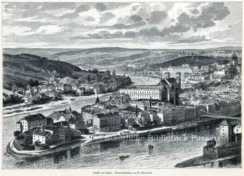 | Keywords: Gottlob Theuerkauf Passau.jpg de Blick auf Passau vom Klosterberg aus Holzstich 17 2 x 24 6 cm Staatliche Bibliothek Passau http //www staatliche-bibliothek-passau de/staadi/nid/phs/082 html Creator Gottlob Theuerkauf ca 1881 PD-old Gottlob Theuerkauf History of Passau Passau in art Wood engravings |