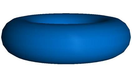 Keywords: Gouraudshading02.png Gouraud shading with Phong illumination model 3 of 4 showing specular artifacts highlights Rendered with OpenGL 2008-02-25 Maarten Everts All rights released public domain Torus Gouraud shading Phong illumination model