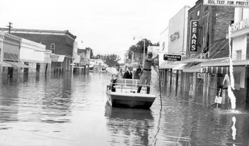 Keywords: state library and archives of florida statelibraryandarchivesofflorida florida hurricanes hurricane dora hurricanedora live oak liveoak (cecil) farris bryant cecilfarrisbryant 1964 blackandwhite monochrome outdoor building architecture black and white Local call number: RC06884   Title: [Governor Bryant surveying flood damage after Hurricane Dora: Live Oak, Florida]   Date: Photographed on September 13, 1964.   Physical descrip: 1 photoprint: b&w; 8 x 10 in.   Series Title: (Reference Collection)   General note: Moving slowly through the flooded business district of this north Florida city, Governor Farris Bryant (dark suit center of boat) gets a close look at these business places, which had water up to five feet deep in them. It was estimated 18 inches of rain fell over a three-day period.   Repository: State Library and Archives of Florida, 500 S. Bronough St., Tallahassee, FL 32399-0250 USA. Contact: 850.245.6700. Archives@dos.state.fl.us   Persistent URL: www.floridamemory.com/items/show/30065 Local call number: RC06884 Title: [Governor Bryant surveying flood damage after Hurricane Dora: Live Oak, Florida] Date: Photographed on September 13, 1964. Physical descrip: 1 photoprint: b&w; 8 x 10 in. Series Title: (Reference Collection) General note: Moving slowly through the flooded business district of this north Florida city, Governor Farris Bryant (dark suit center of boat) gets a close look at these business places, which had water up to five feet deep in them. It was estimated 18 inches of rain fell over a three-day period. Repository: State Library and Archives of Florida, 500 S. Bronough St., Tallahassee, FL 32399-0250 USA. Contact: 850.245.6700. Archives@dos.state.fl.us Persistent URL: www.floridamemory.com/items/show/30065 |