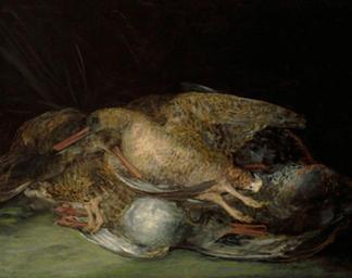 | Keywords: Goya Becadas o chochas muertas.jpg Artwork Creator Francisco de Goya y Lucientes 1806 - 1812 oil canvas cm 42 5 62 6 Institution Meadows Museum accession number 71 01 http //smu edu/meadowsmuseum/collections_Goya_Life htm The Meadows Museum object history Ver Trozos de carnero a 1865 pasó por diversas manos hasta que en 1971 fue adquirido por el 1971 Meadows Museum de Dallas credit line Museum Purchase; Meadows Museum Acquisition Fund http //www fundaciongoyaenaragon es/goya/obra/catalogo/ ficha 554 fundaciongoyaenaragon es PD-old-100 Still life paintings by Goya Paintings in the Meadows Museum Rococo still life paintings Classicist paintings Realist paintings of food Still life paintings of birds Oil paintings of birds Uploaded with UploadWizard |