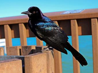 Keywords: grackle boat-bound quiscalus black bird iridescent purple glitter florida birds nature wild