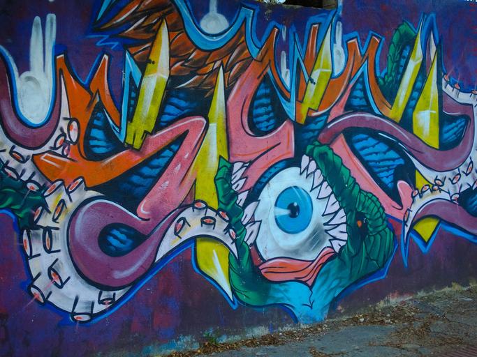 Keywords: graffiti art urban wall painting vandalism young teens colorful eye students fellow