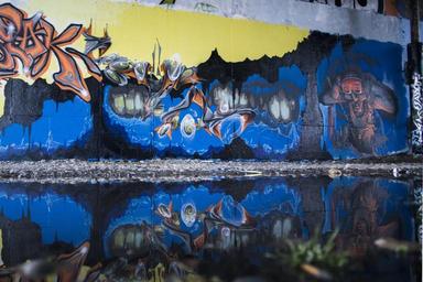 Keywords: graffiti blue wall urban reflection