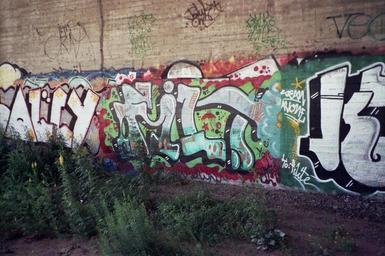 | Keywords: Graffiti in Oulu Jul2008 001.jpg en Graffiti under/near a bridge in the city of Oulu in Finland The district is probably Limingantulli fi Graffiteja Oulussa luultavasti Limingantullin kaupunginosan alueella Own Methem Mikko J Putkonen 2008-07 Graffiti in Oulu Limingantulli |