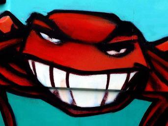 Keywords: graffiti monster mural street art colorful aggressive tooth sprayer wall spider red