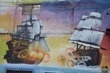 Keywords: graffiti painting ship drawing artwork image hauswand art mural street art south america colombia artists