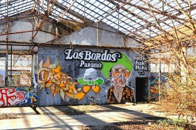 Keywords: graffiti street art painting hangar factory tag decommissioned decor colors artistic urban bomb decoration