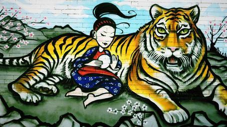 Keywords: graffiti tiger girl paint wall spray
