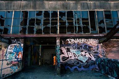 Keywords: graffiti windows building wall urban architecture dirty abandoned grunge brick aged exterior window vandalism broken ruin weathered old