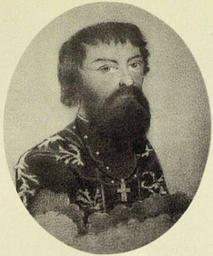| Keywords: Gramotin.jpg ru Иван Та асьевич Г амотин 1638 - подьячий а затем думный дьяк видный деятель Смутного в емени т ижды п и азных госуда ях возглавлял Посольский п иказ Описание изоб ажения из источника Весь по т ет 16½ x 13½; медальон 14¾ x 11¼ П иоб етён князем А Оболенским на с едства А хива ногие сомневаются в том чтобы настоящий по т ет действительно изоб ажал Г амотина Иные п едполагают что это или асколоучитель п отопоп икита Пустосвят или Стенька Разин и т д и то ни д угое п едположение не может быть п изнано достове ным потому что на шее изоб ажённого лица надет четы ёхконечный к ест кото ый вместо восьмиконечного не надели бы ни икита Пустосвят ни Стенька Разин стоявший тоже за ста ые об яды Достове ных по т етов последнего не известно; настоящий по т ет если бы он п едставлял Разина должно бы отнести к числу фантастичных изоб ажений сего лица Этот по т ет имеет большое сходство с изоб ажением Пугачёва; но судя по аботе он исполнен кажется в пе вой половине XVIII века и потому не может п едставлять его century 18 осковский главный а хив инисте ства иност анных дел По т еты и ка тины х анящиеся в нем Каталог Вып 1 С 16 фототип табл / Сост А А Алябьевым; Под наблюдением С А Белоку ова - 1898 URL http //dlib rsl ru/viewer/01003951695 page 29 author PD-old-100 Uploaded with UploadWizard Ivan Gramotin 17th-century portraits of Russia |